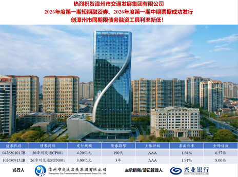 漳州交通集團成功發行7.2億元債務融資工具,票面利率創新低